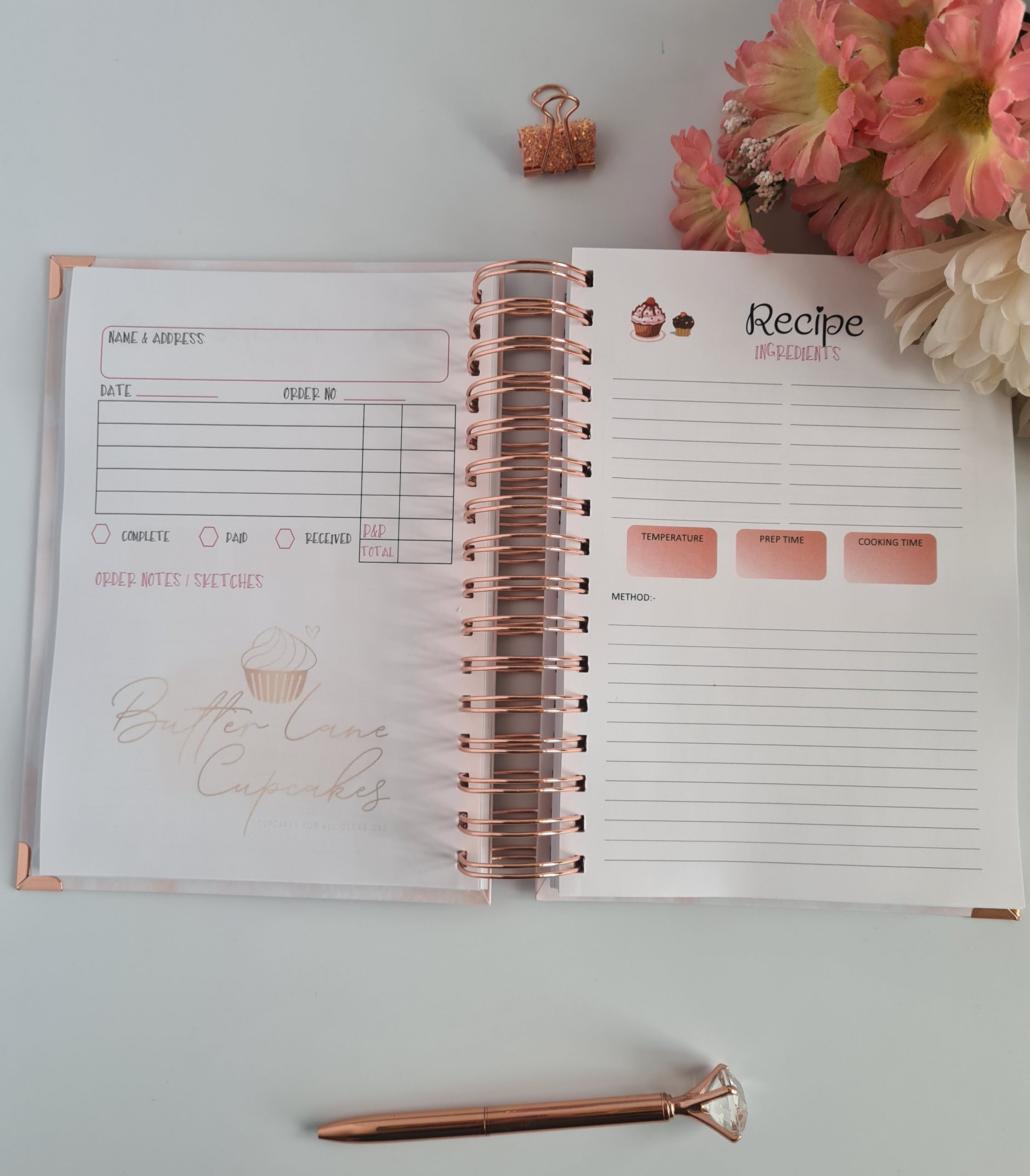 Product Type : Hardback Book – A5 Order Book 1 order per page with space for sketches/notes, and the opposite side is a recipe page. Pages are 100gsm smooth quality paper. Please note binding wire colour may vary depending on stock. Corner protectors are only on hardback books with more than 120 pages.