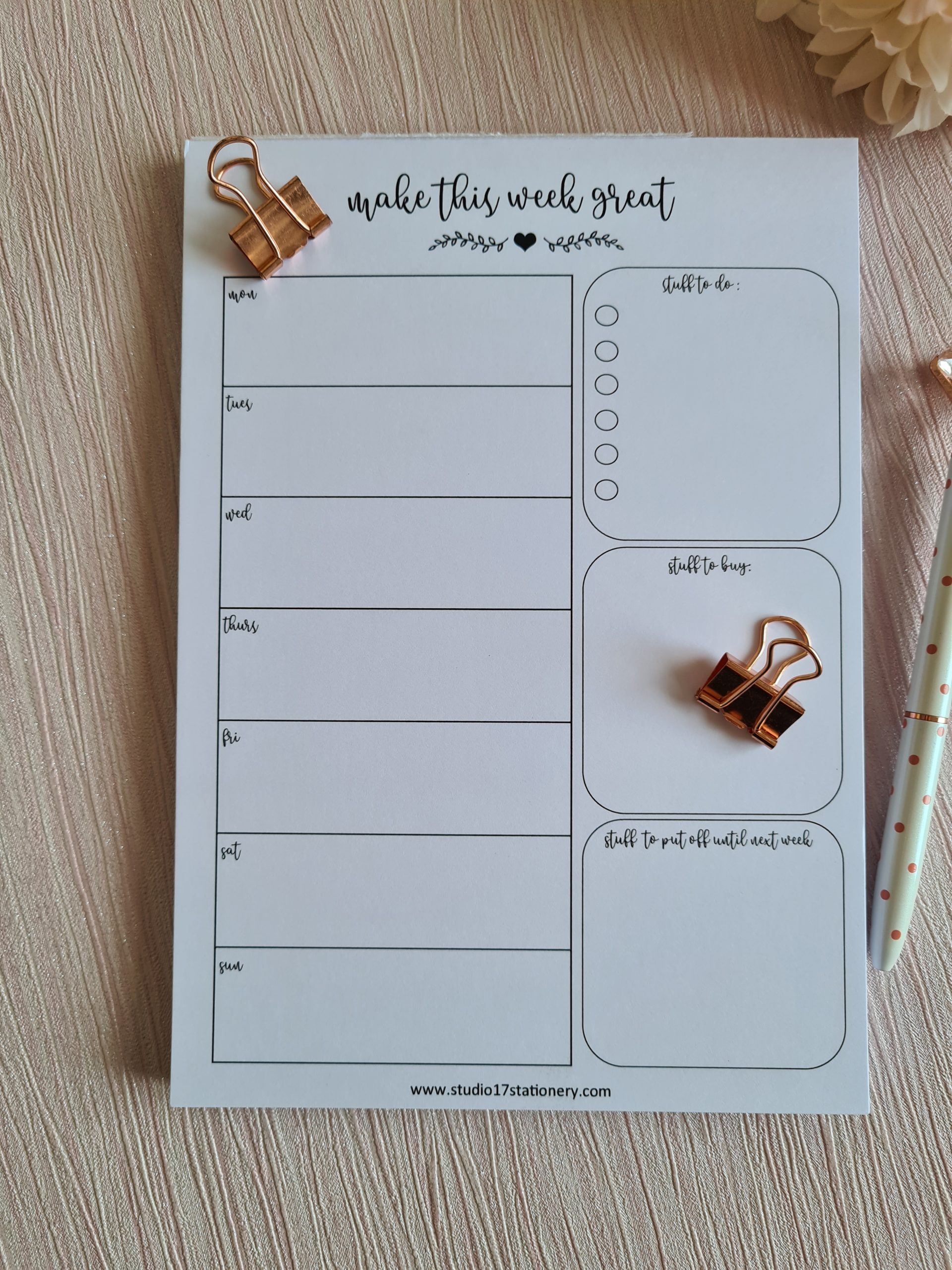 Make your week great … and keep it organised with this daily A5 tear off planner.