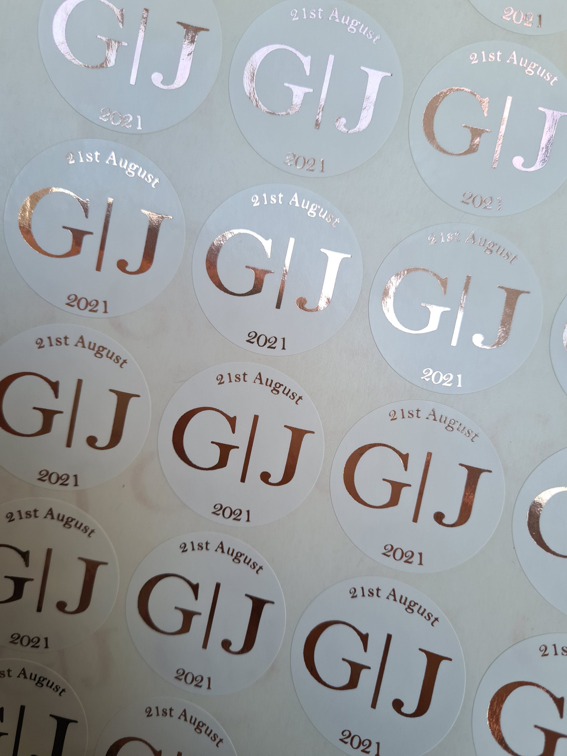 Round foiled stickers – 37 mm. Available in White/Clear and Coloured Gloss or Frosted finish. Available in multiples of 35. Price will change based on your selections,
