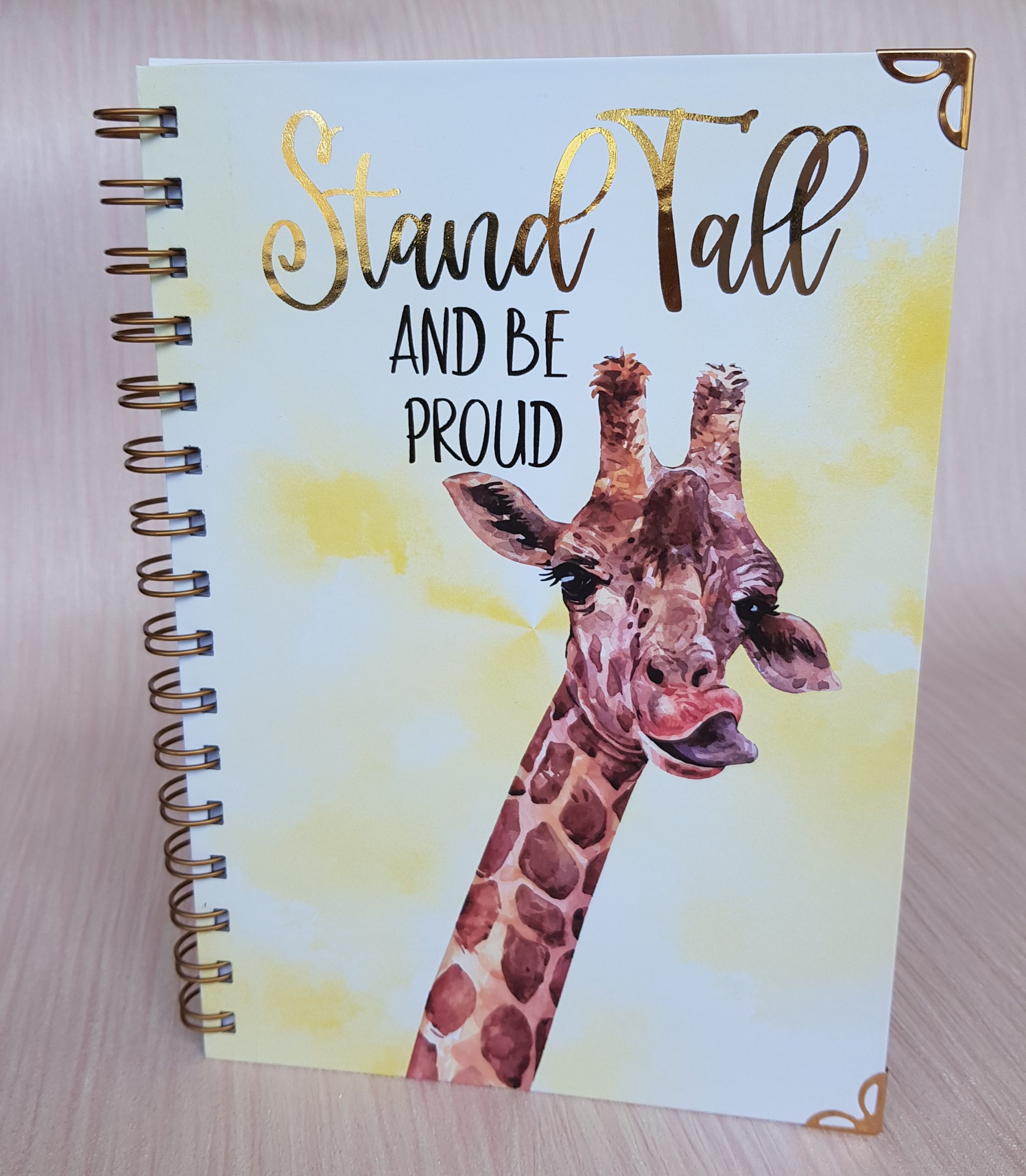 Beautiful health & wellbeing journal featuring a giraffe design. Available with co-ordinated or lined pages