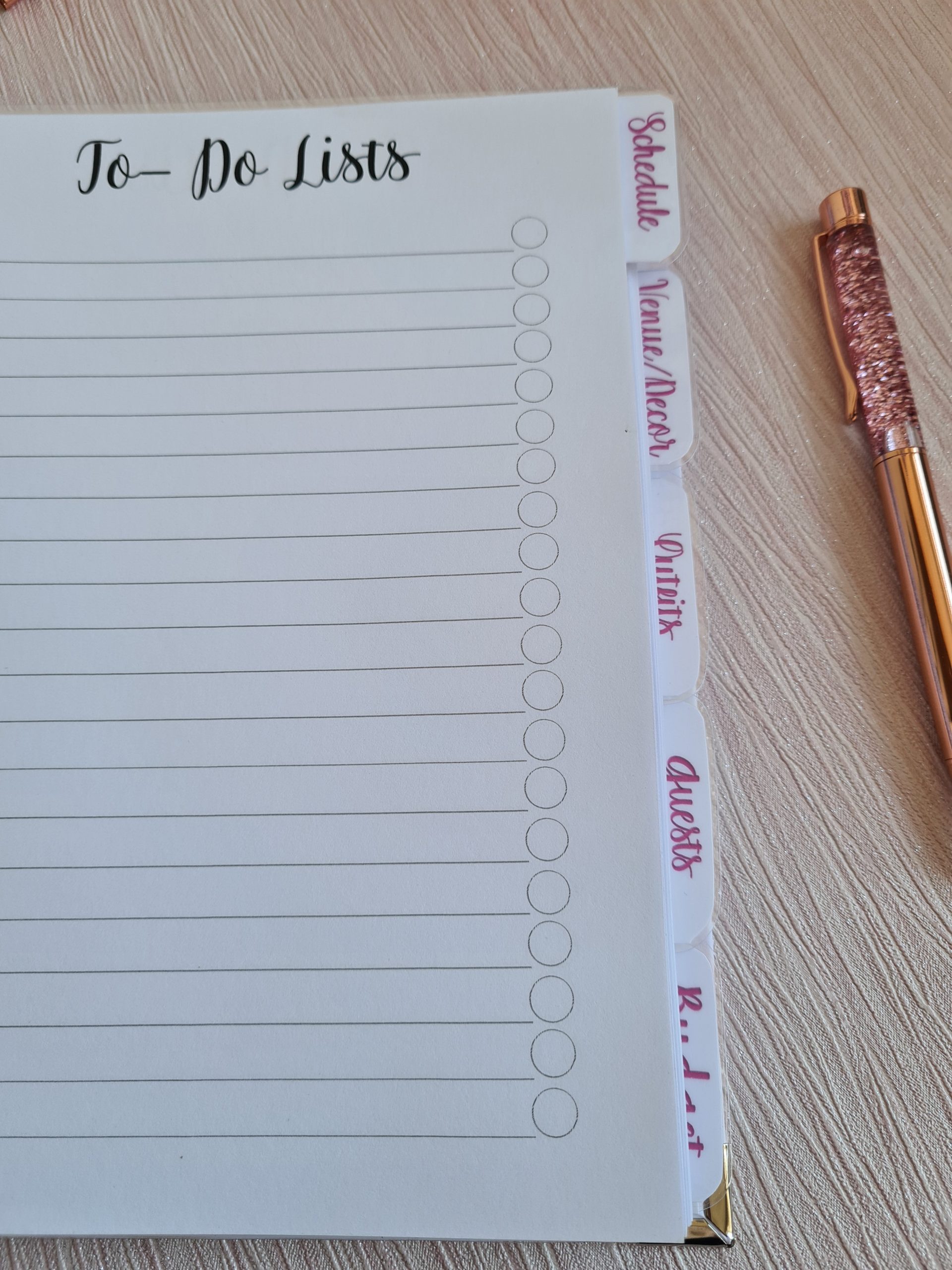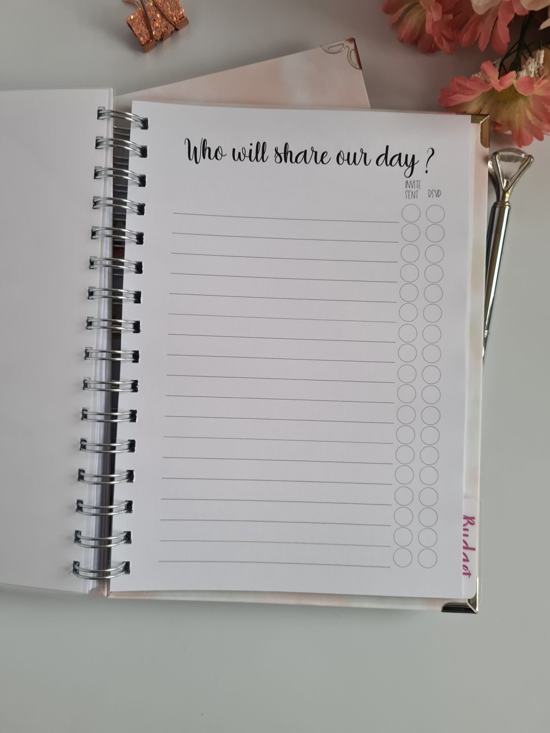 The book has themed pages to help you plan the big day including to do lists, schedule, venues and decor ideas, dress and other outfits, guest list & table plans & budget planner. You can also upgrade to a planner which has dividers to separate the sections.