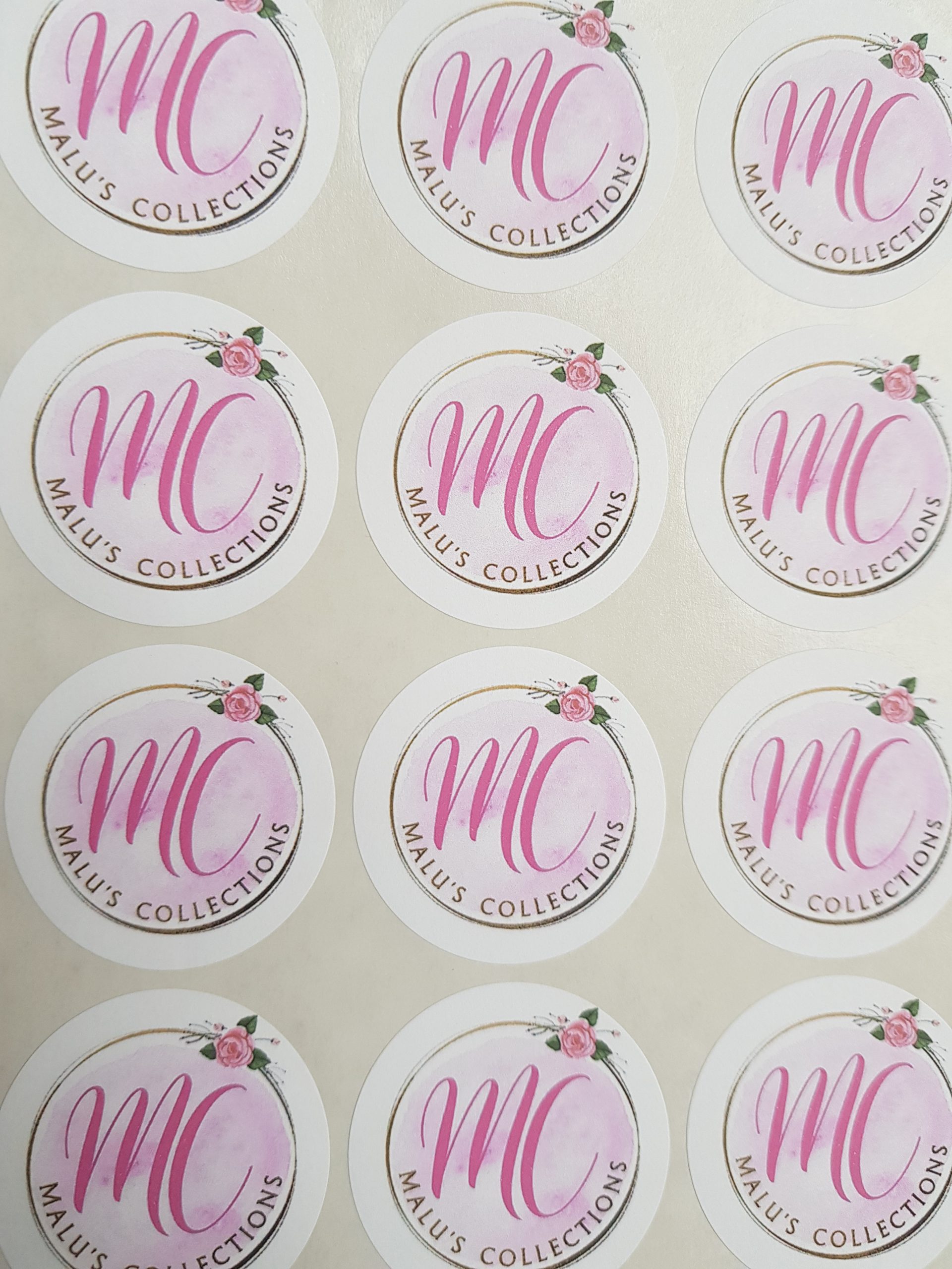 Printed Round Stickers 37mm round. Any design/wording available in Matt paper or Gloss finishes . Send logo to info@studio17stationery.com