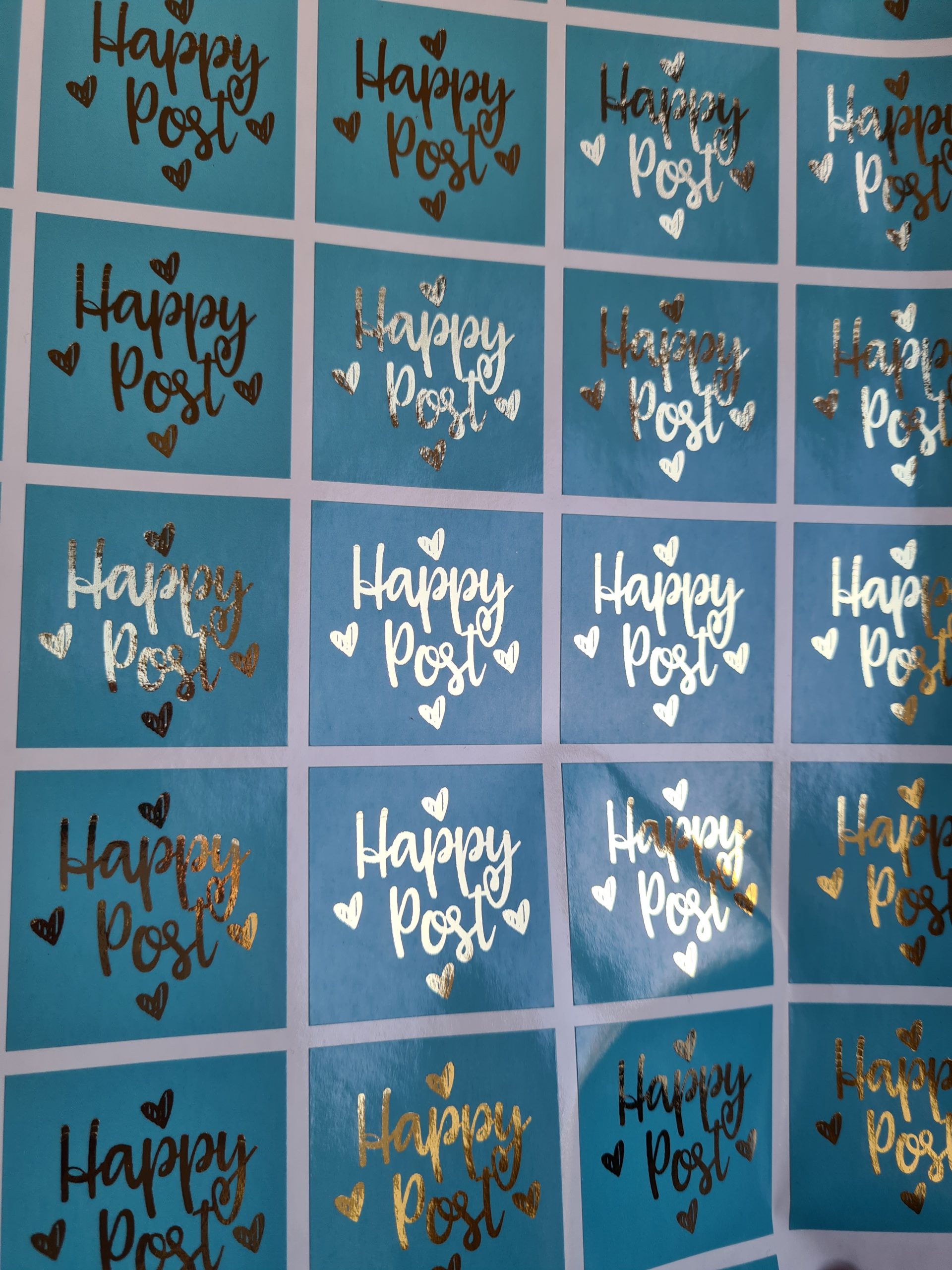 Square gloss foil stickers. Choose any wording on this design 37mm size – available in multiples of 35 .