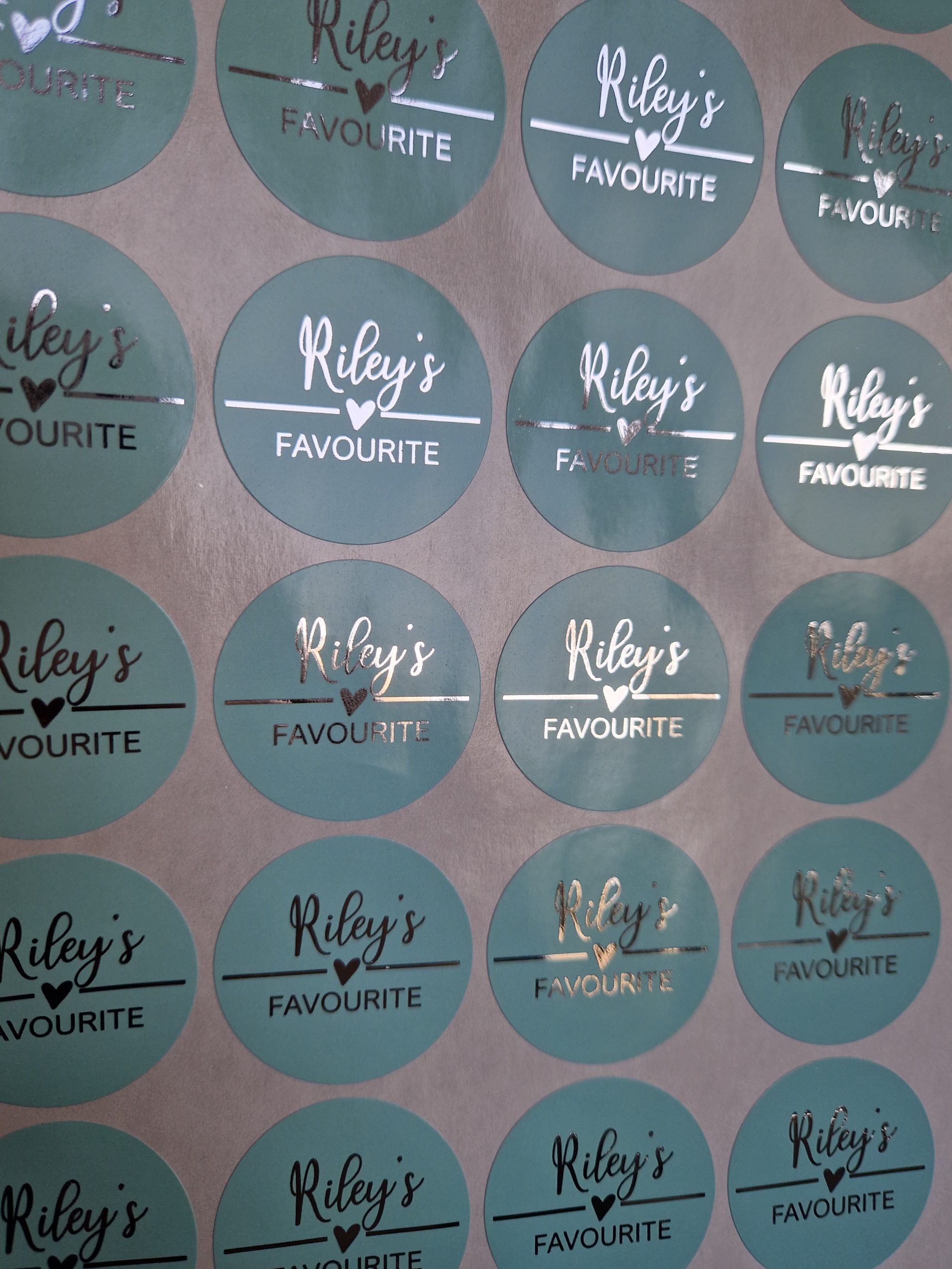 Foiled wedding stickers 37 mm. Available in White/Clear and Coloured Gloss or Frosted finish. Available in mulitples of 35.